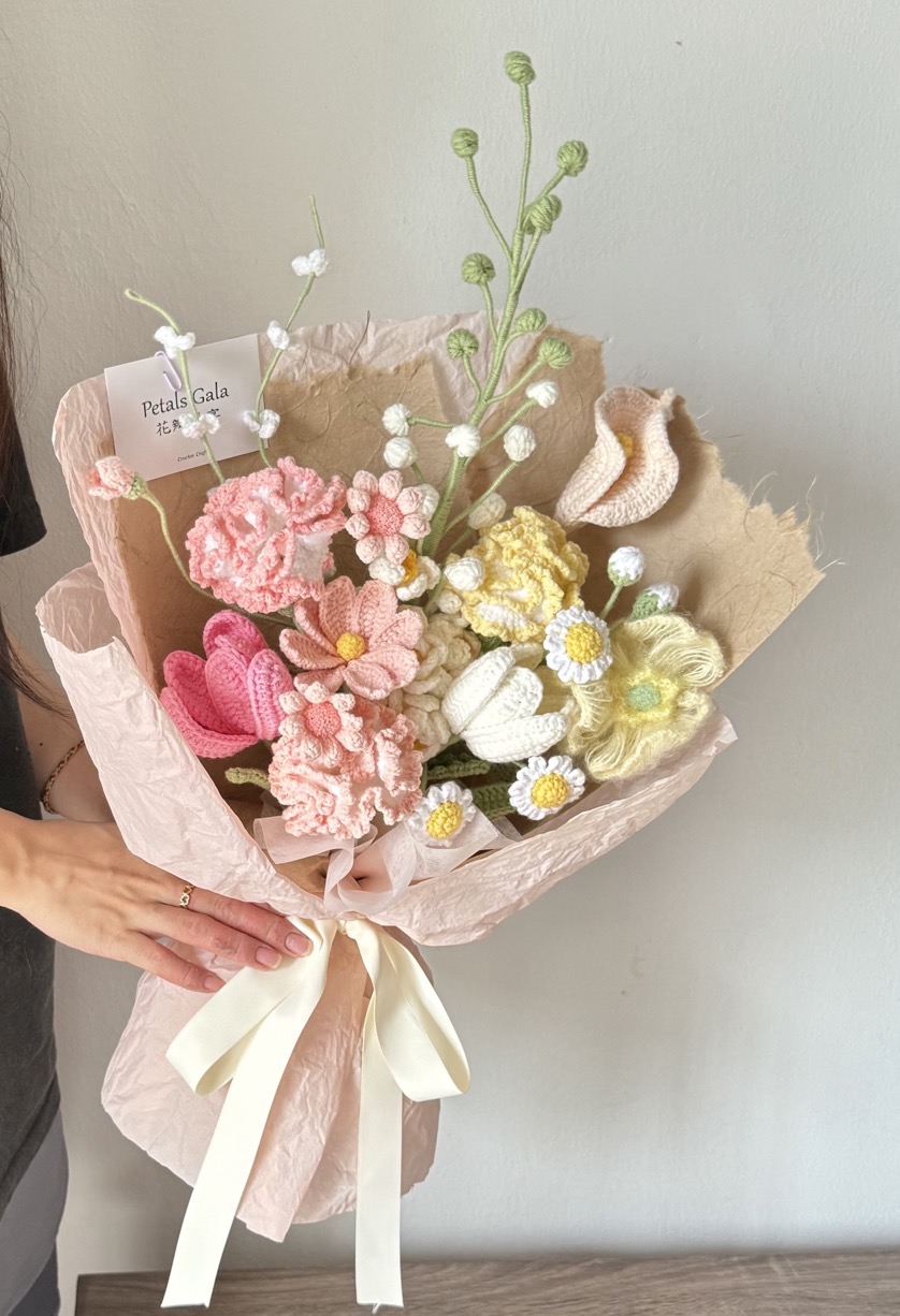 Delphinium Garden Mix crochet bouquet, suitable for any occasions.